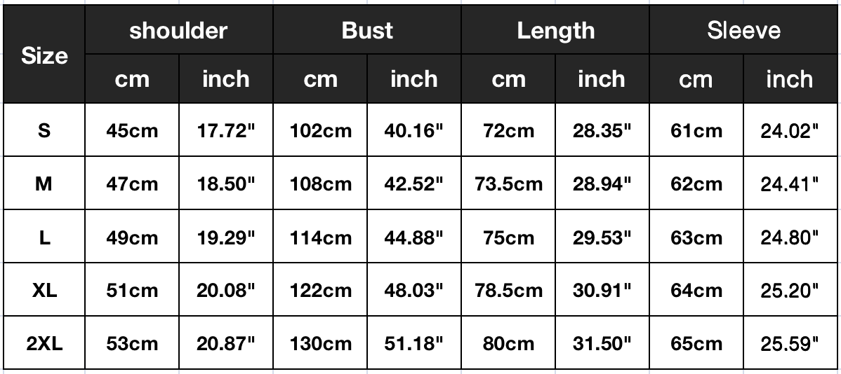 Note: The size is measured directly on the clothes. And the size measurements may vary from category to category. It may be off by 1-2CM. Please confirm the size chart before making an order.